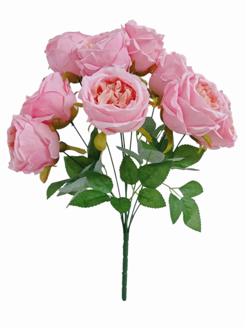 40cm 9Heads Large Cabbage Rose Bush with Foliage Two Toned Pink (More than 12pcs=£3 each)