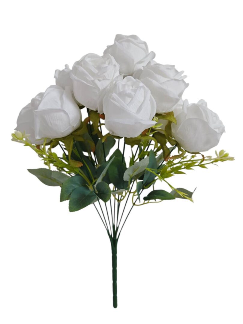 40cm 9Heads Large Open Globe Rose Bush with Foliage White (More than 12pcs=£3 each)